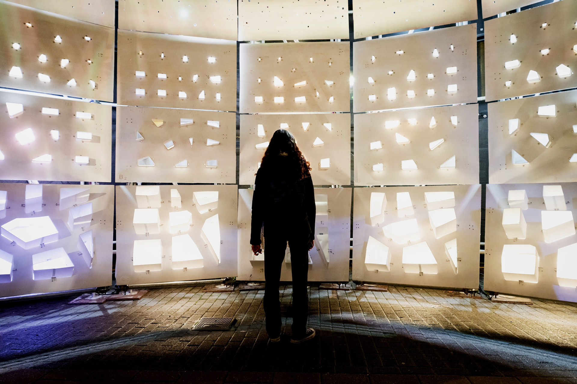 SKYWAY is a light installation created for GLOW Festival 2024 under the theme “The Stream.” As urban light grows brighter and stars become invisible, SKYWAY responds by using light to guide the gaze upward, suggesting a path back to the sky. As visitors pass, the structure gradually illuminates, turning movement into a spatial cue. The work exists between art and tech, using light not for illumination but as a narrative element. This required translating an abstract concept into a buildable installation within real technical and financial constraints. Acting as the bridge between poetic intention and technical realization, the process involved coordinating across disciplines.